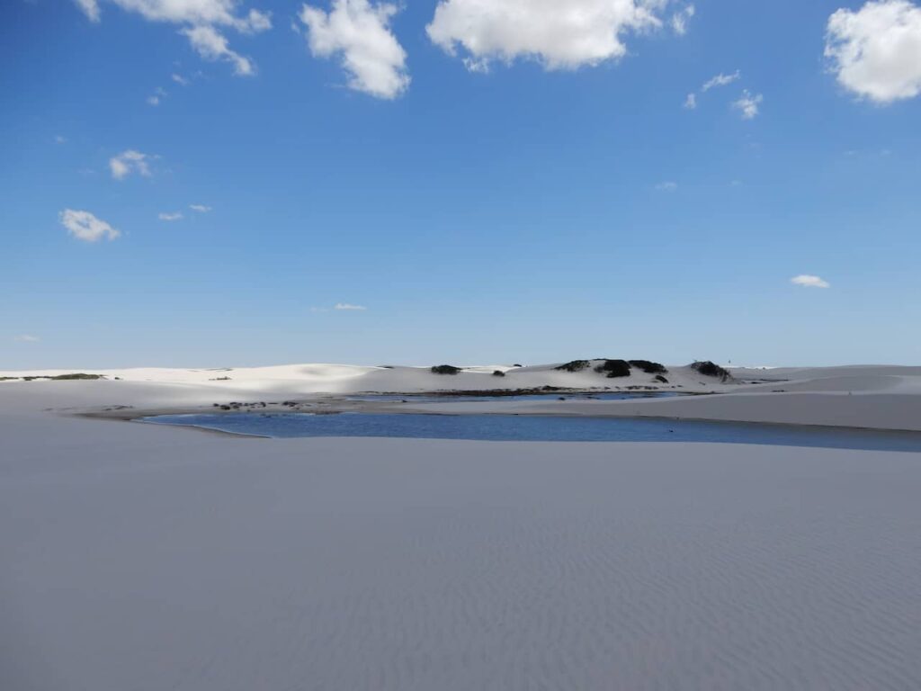 O interessante é que o cenário muda constantemente. Nenhuma viagem aos Lençóis é igual à outra. As lagoas se formam e desaparecem conforme as chuvas, e isso torna cada experiência única. O passeio pode ser feito tanto pela manhã quanto à tarde, mas, se puder, vá cedo para aproveitar com mais tranquilidade.