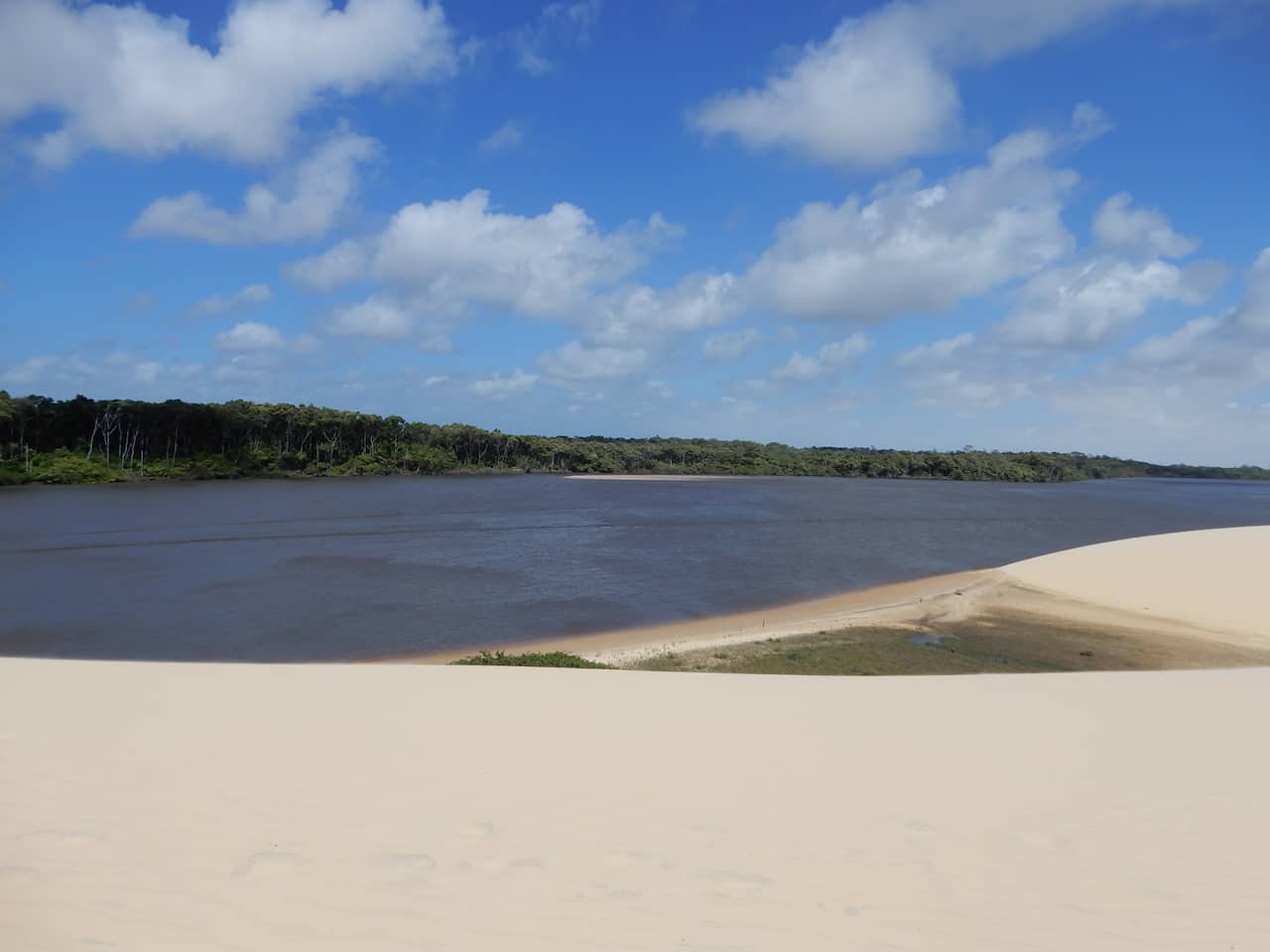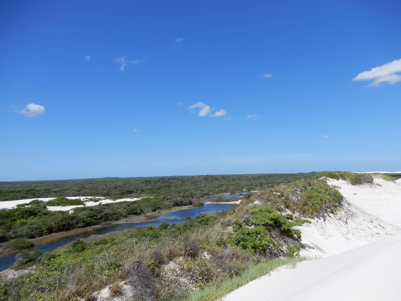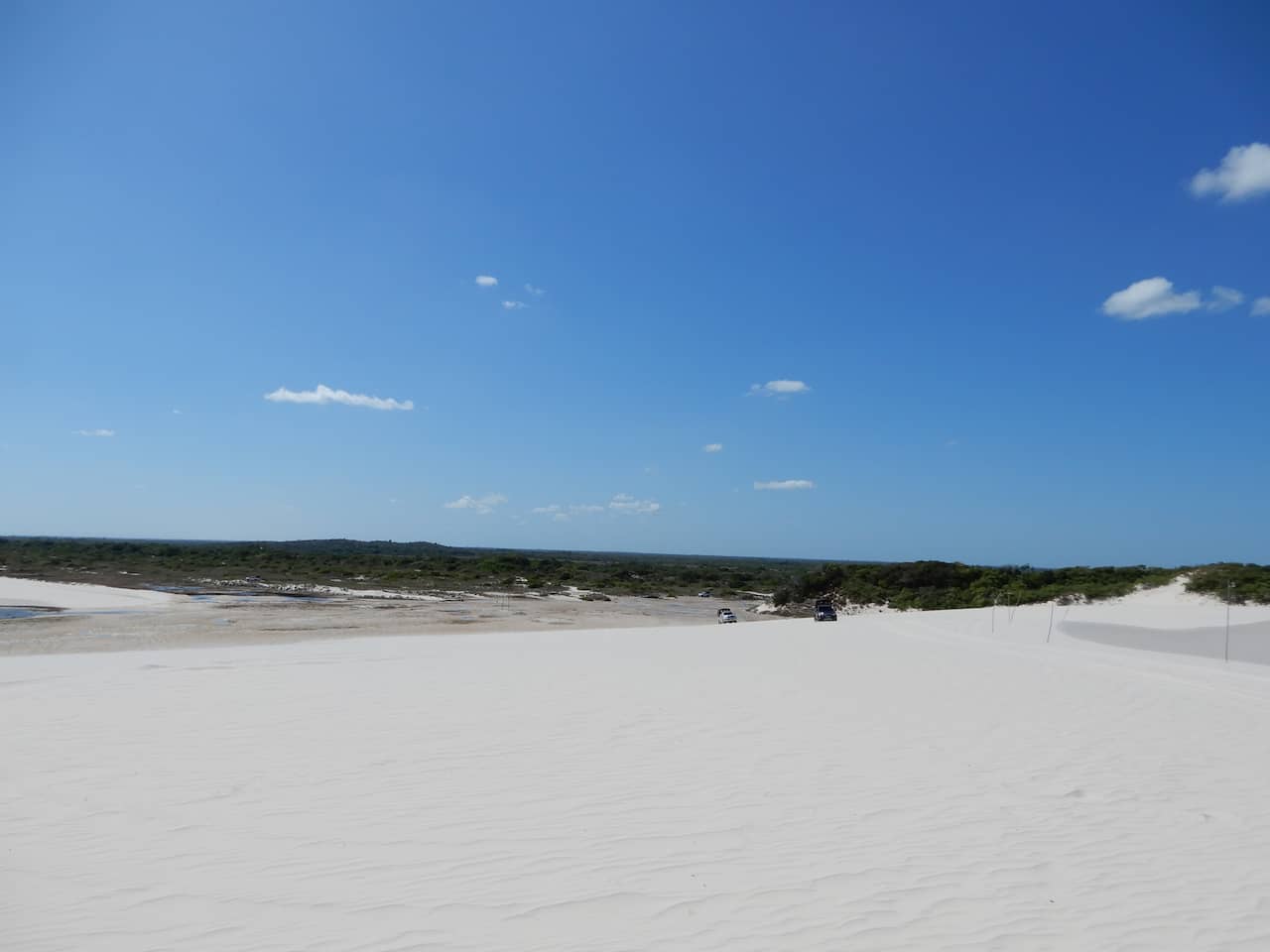 Diferente de Santo Amaro, o acesso às dunas a partir de Barreirinhas é mais longo. O trajeto passa por uma espécie de “floresta de areia”, uma área de transição onde a vegetação de restinga e cerrado se mistura às dunas. É um cenário curioso, quase mágico.