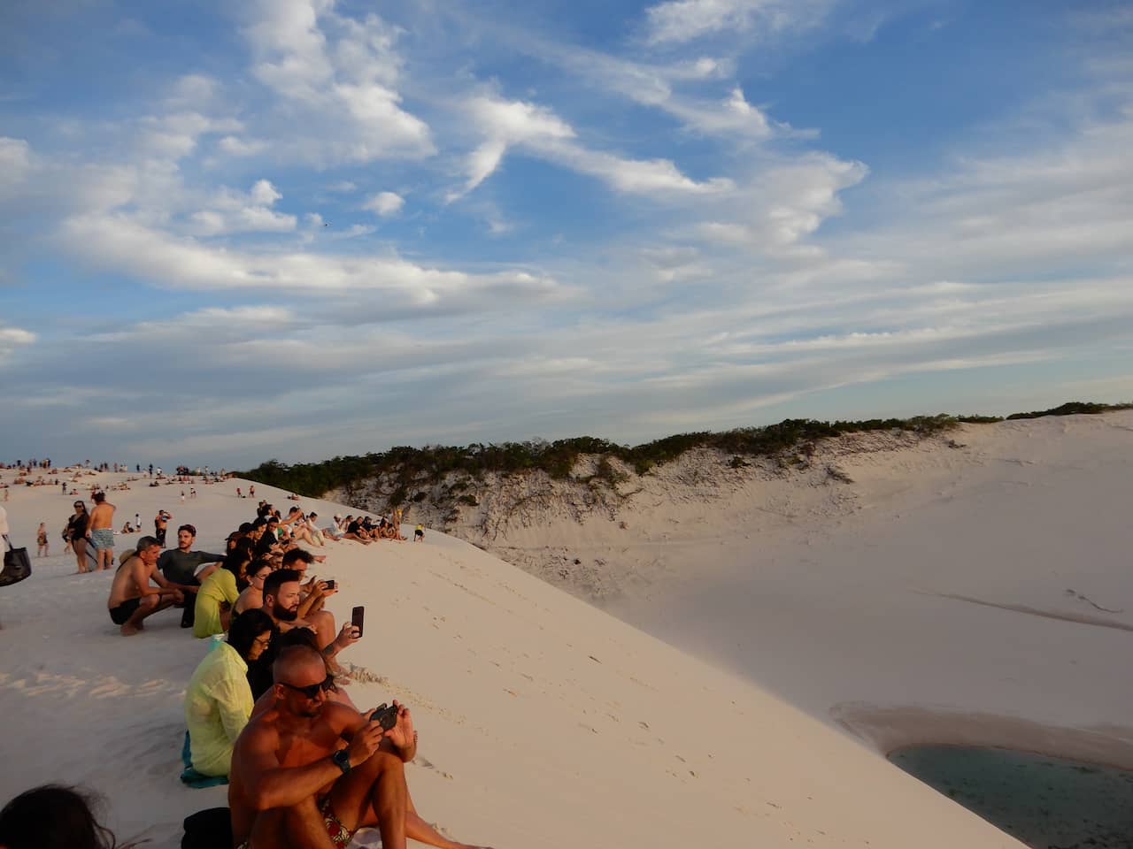 Caminhar entre as dunas dá uma sensação de liberdade total. É como estar em outro planeta, onde só o vento e o silêncio fazem companhia. Depois da caminhada, mergulhar nas águas mornas da Lagoa Bonita é simplesmente delicioso. Escolhi fazer o passeio à tarde para assistir ao pôr do sol — e que espetáculo! O céu se pintando de tons dourados e rosados foi um daqueles momentos que ficam gravados na memória.